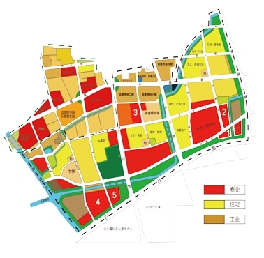 其中,一轴:城市发展主轴,现在已有万达广场、万融城、国际会展中心入驻;两带:祥园路、杭行路产业发展带;三片:形成东片、西片、南片产业集群发展。