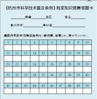 《杭州市科学技术普及条例》有奖知识竞赛题目