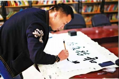 原来王少敏祖籍湖北黄冈,爷爷也是一位书画爱好者。看着爷爷舞文弄墨的小少敏自然而然对传统书画产生了浓厚的兴趣,也开始在边上学着写写画画,渐渐地倒也学得有模有样了。要算起来,王少敏的书画开蒙应该是在7、8岁的年纪,虽然并没有到专业的书画班去学习,但是整个学生时代都保持了日常书写的习惯,所以书画技艺也日渐精进。后来因为参军,书画才搁置了几年。转业后,王少敏来到杭州工作,并最终在这儿安家,生活的稳定让他又重新拾起旧时的爱好。相比有些下了班去泡吧或者搓麻将的人,像王少敏这样一下班就宅在家里舞文弄墨的,实在是不多,所以岳父母对他们这个女婿的业余爱好是极为支持。除了支持,言语间也充满自豪感,别的不说,这个女婿的书画这么出色,连邻居都对此交口称赞,让岳父母感觉很有面子。