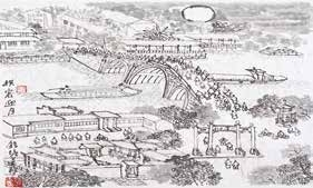 苏东坡诗《杭州故人信至齐安》里,最后一句“还将梦魂去,一夜到江涨”,说的即是江涨桥。自古以来这里便是商贾云集之所。江桥、暮雨、渔火等融会一体,实在是体会“江桥暮雨”的最佳地点。