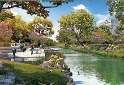 园中河(西塘河—祥兴路)段拟打造成阳光活力区,将设置休憩平台、亲水栈道、健身跑道。整个区块体现居住、社区、运动文化需求的同时将城市山水景观融入其中,形成四季有景可赏的阳光水岸景观。