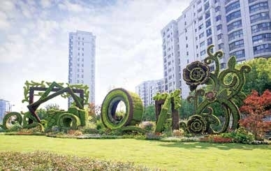 两项作品均由几十位工人继续数夜奋战精心布置而成。满目鲜绿、造型灵动,引得路人纷纷回头或驻足拍照。