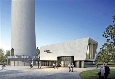 项目占地面积约174.4平方米,总建筑面积约345平方米,估算总投资造价约243万元,为原有保留建筑的提升改造项目。一层层高4米,二层层高5米,主要布置展示空间,并搭设与大烟囱连接平台。立面采用现代手法,仿清水混凝土外墙及轻钢玻璃雨棚,考虑与大烟囱和周边工业建筑融合呼应。目前已完成施工图设计,进入施工招标,力争2018年底开工建设。