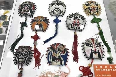 会场中沈塘桥社区非遗老人魏培坤10件神情迥异的手绘龟壳脸谱和石膏脸谱安静地陈列在玻璃展柜中,吸引了众人的注意。