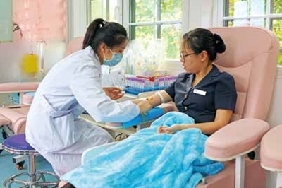 当记者走进献血屋时,看到志愿者们已经排起了长队。在工作人员的引导下,大家有序地完成填表、体检等流程,然后躺下来等待抽血。在百瑞运河酒店上班的小余,献完血正在一旁休息,她笑着告诉记者,“今天我也是被同事们约过来的,这是第一次献血,刚刚抽了200ml,希望能帮到别人吧。”