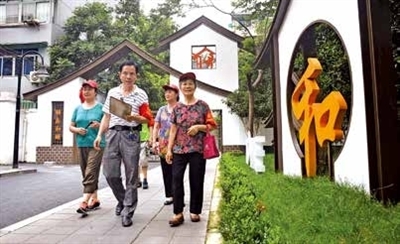 和睦新村依托开放式老旧小区的环境和配套设施,采用居民互助、社会资源整合等方式打造“没有围墙的养老院”。在新创建的“阳光老人家·颐乐和睦”养老服务综合街区里,休养中心、健养中心、乐养中心等一应俱全,24小时对外开放,不用出小区,老人就能享受文化、娱乐、就餐、医疗、康复、助浴、无障碍出行等一街式服务,这也成为全市首个街区式居家养老项目。