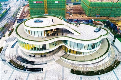 目前,万科汽车互联网核心产业园核心建筑——创新体验中心已建成开放,远远看去,酷似汽车仪表盘的建筑造型,呈现出科技的酷炫和自然的律动;沿着建筑蜿蜒而上的汽车跑道,贯穿地面与建筑楼层,汽车向上犹如在建筑中穿行;以及楼顶360度的汽车发布秀场,都将科技与产业在设计中充分融合,为产业和空间带来无限活力。中心内部还打造了杭州汽车互联网小镇未来馆,集合模型展示、洽谈沟通等多种功能。