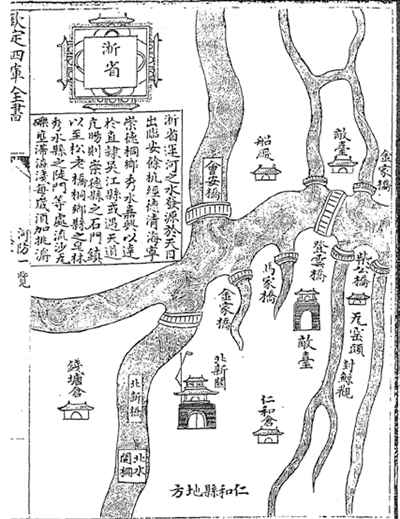 汤显祖的诗歌中,也写到过运河,涉及地点有南旺、汶上、张家湾、王江泾等地,有些还讲到运河的功能和盛况。提到王江泾的诗叫《冬至王江泾舟中送彭直指赴逮》(退鹢风初急,啼鸟日正寒。今朝逢柱后,长是发冲冠。似有都船狱,飞霜一诣台。相逢长至日,难道不然灰。)该诗作于万历二十二年(1594)冬至,汤显祖以遂昌知县第一次赴北京上计(即述职汇报工作)途中。汤显祖当是在该年冬至日或前一两天,从武林门外乘舟经北新关前往北京。理由很简单,王江泾即今嘉兴秀洲区的王江泾镇,是江浙两省交界之地,京杭大运河穿镇而过。且看《浙西水利备考·杭嘉湖三府水道总说》里的一段话:“下塘河,出江涨桥,与西溪及余杭塘河水合流,汇注为杭州运河,越德清界,经石门、桐乡、秀水三县镜,为嘉郡运河,出长虹桥,至王江泾,达江苏吴江之平望。”当时这条水路又叫官塘,汤显祖谅不会绕过如此便利的水道,而走陆路到王江泾再转舟。