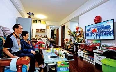 “老伴眼睛不好,国庆阅兵这样的大喜事,我就讲给她听。”陈国泉老人曾是两弹一星参研人员。1964年到1981年,陈国泉老人从事核武器总体理论设计和试验工作。他钻研的原子弹和氢弹的系列项目获得了国家九项大奖,个人也荣获工业部颁发的“为我国核武器发展做出重要贡献科研人员”荣誉。