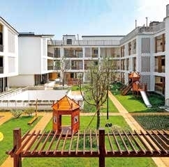 主体建筑以中式庭院风格为主,园所围合而成的庭院错落有致,营造了一个充满历史文化气息和自然活力的温暖空间。除了配备21个标准的活动教室,园内有充满自在味道的庭院环境,又有充满野趣的石玩池、沙水池和秘密花园等户外探究活动场,还创设了满足孩子多元个性化需求的彩虹创意屋、云朵书屋、麦兜厨房等专项活动空间,让孩子们拥有一个生态自然、寓教于乐的活动环境。