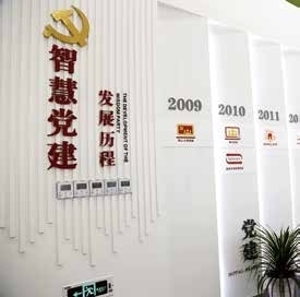 而在“北软大观”对面的墙体上,中心运用滑轨技术动静结合地展示了中国共产党历史,引导党员边走边看,体验中国共产党一步一个脚印,历经站起来、富起来、强起来,逐步走向辉煌的艰辛历程。