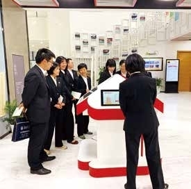 走进北软党群服务中心,迎面看到的就是中心的“党建领杭”区域。该区域包括接待中心、志愿者之家、智慧党建历程、创业先锋秀等功能模块。目前,接待中心配备了2名专职党务工作人员,提供来访接待、场地预约等服务,为来客详细解说服务中心的特色。