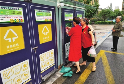 除了推行智能化垃圾分类体验以外,志愿者每天常态化指导居民精确分类、定时定点正确投放,社区分类准确率达95%以上。