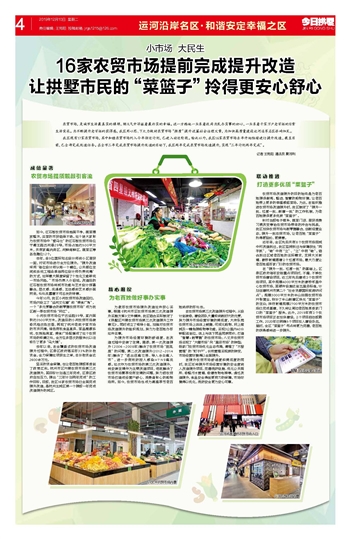 今年10月,我区小河农贸市场改造回归。市场内设立了“运河文化墙”和“美食广角”,一个“多元素融合的新零售农贸市场”成为我区新一季农贸市场“网红”。