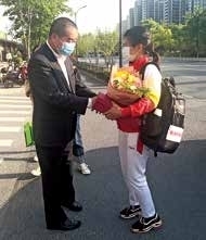 李佳琪刚从车上下来,社区工作人员们就纷纷围了上来,有的献上鲜花表达敬意,有的帮忙拿行李,有的还送来了小礼物……“我是武汉人,我要替同胞们谢谢你!”人群中还有一位武汉籍居民,听说李佳琪刚从武汉前线归来,特意和社区一起向她表达了深深的谢意。李佳琪流着激动的泪水,连连鞠躬道:“去支援是使命所在、职责所在,都是我应该做的。”
