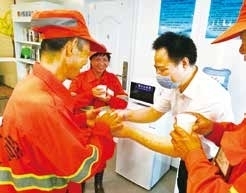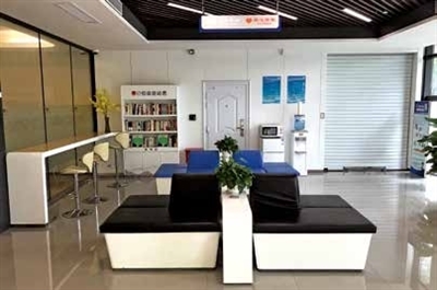 原来这是康桥街道区域监管办与辖区联合银行合作设立的专为环卫工人提供惠民服务的“爱心驿站”。“爱心驿站”位于丽水北路803-805号杭州联合银行康桥支行的一楼大厅,面积约50余平方米,跟银行的客户等候区是分开的独立空间。在这里,环卫工人们累了可以歇歇脚,渴了可以进来喝杯茶。