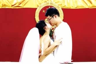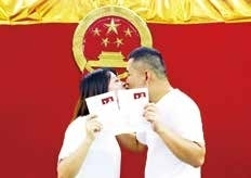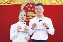 还有一对情侣,披着头纱,拿着花束,后面还有一位跟拍的摄影师,仪式感十足。程小姐和吴先生是初恋,“我们一起走过学生时代,也经历过异地恋,这些年纪念我们爱情的是厚厚一叠车票,时光拆不散我们,所以我们要在一起。”吴先生说,太太喜欢浪漫,注重仪式感,领证意味着他们的爱情进入了一个新的阶段。程小姐笑着补充道:“接下来还有更多的日子要在一起,我们一定会幸福的。”