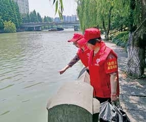 宣传、动员、鼓励,在垃圾分类志愿队的基础上,又增加了运河巡河队。每天上午,她们环绕锦绣社区徒步巡河检查,既锻炼了身体,又加深了和小区姐妹们的联系,大伙在欢声笑语中改善了家园环境,大家都说:“成为‘锦绣大姐’,开心!”