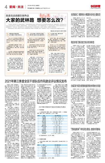 2021年第三季度全区干部队伍作风建设评议情况发布