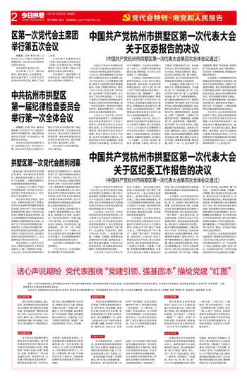 大会号召,全区各级党组织和全体共产党员,要更加紧密地团结在以习近平同志为核心的党中央周围,在省市委的坚强领导下,始终保持永不懈怠的精神状态,始终保持一往无前的奋斗姿态,唯实惟先、善作善成,高水平打造时尚之都数字新城运河明珠,为开创拱墅新时代高质量发展共同富裕示范新局面而努力奋斗,以优异成绩迎接党的二十大胜利召开!