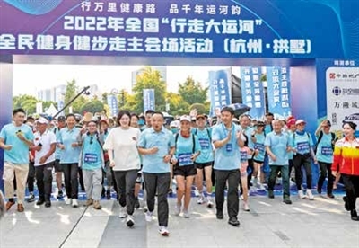 本报讯(通讯员 杨于佳)大运河畔品味千年古韵,全民健身热潮再添活力。8月20日上午,全国“行走大运河”全民健身健步走主会场活动在拱墅大运河畔隆重举行,活动现场共吸引了1500名徒步爱好者一同“行万里健康路,品千年运河韵”。