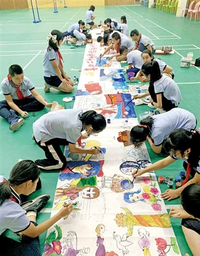 现代实验小学开展了“喜迎二十大 共绘新时代”开学典礼活动,同学们齐心共绘十米长卷,用巧手绘出心中祖国最美的样子