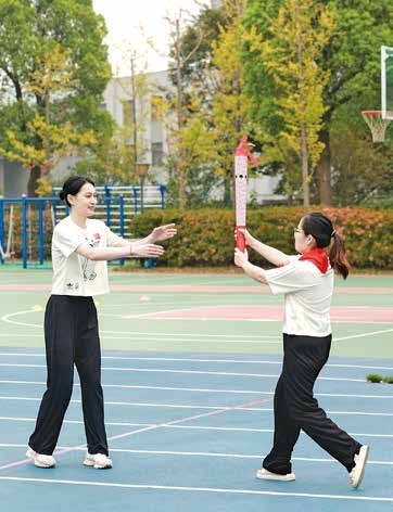 文澜小学启动了学校的“亚运体育嘉年华——暨校园吉尼斯达人挑战赛”活动,传递亚运火炬,共同开启亚运年