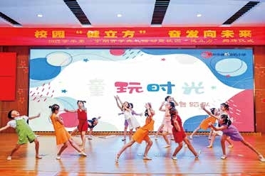 育才京杭小学举行了以“校园健立方,奋发向未来”为主题的开学典礼,来自学校、家庭、社区多方代表共同为“健立方”揭牌