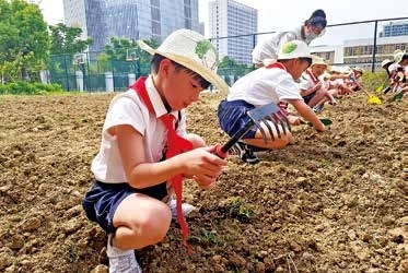 永正实验学校的孩子们活跃在田地里,播种白菜籽,这是他们的“开学第一课”
