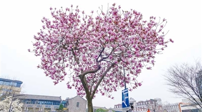 据了解,这颗玉兰树为二乔玉兰,又名朱砂玉兰,为玉兰和木兰的融合种,胸径约14厘米,树龄已超20年。除“爱心”玉兰外,武林路沿线两侧还有白玉兰、二乔玉兰共25株,目前正值花期(花期一般为10-20天),市民朋友们可要抓紧喽。