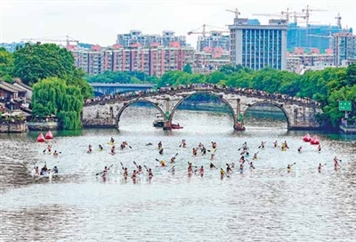 本报讯(通讯员 姚婧雯)历史悠久的拱宸桥,桥下是汩汩流淌的千年大运河。6月22日,作为中国大运河申遗成功十周年系列活动的全民优生活“2024京杭大运河皮划艇马拉松系列赛(杭州站)暨长三角水上运动节”在京杭大运河南端的标志——拱宸桥开赛!