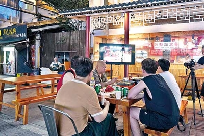 来光顾的有不少老主顾,因此一到店里,罗晓晓就得不停地招呼。她说,在这里还能时不时地听见亲切的乡音。“之前有一群川西的客人特意来打卡。那天店里正好还有驻唱歌手,一桌子人一起唱起来,让我感觉回到了老家。”罗晓晓说,这份浓厚的烟火氛围,是她选择留在胜利河的原因之一。