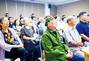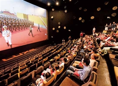 武林街道的党员代表、统战人士、“武林大妈”志愿者代表走进嘉里中心百美汇影院沉浸式观看阅兵式直播。中北社区侨眷唐伟胜情不自禁地跟着国歌哼唱,手中挥舞着小国旗说:“我的儿子在加拿大,每次视频通话都叮嘱我要多关注祖国发展。今天看到阅兵式上整齐的方阵、先进的装备,我真切感受到祖国的强大,也更加理解了‘家国情怀’的深意。”