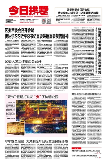 本报讯(记者 林韬 通讯员 黄朝文)10月10日下午,区委人才工作座谈会召开。区委书记李志龙出席会议并讲话,他强调,要深入学习贯彻习近平总书记关于做好新时代人才工作的重要思想,全面贯彻中央、省委、市委部署要求,谋深做实教育科技人才一体改革发展、科技创新和产业创新深度融合“两篇大文章”,进一步做优人才服务、建强人才生态,齐心协力推动拱墅人才工作再上新台阶。区委副书记、区长敖煜新主持,区委常委、组织部部长施甜甜参加。