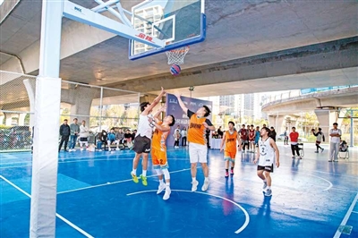 “以前,打球都要跑到很远的地方,现在,家门口就有专业的场地了,很方便。”何硕说,这个由桥下空间改造而成的篮球公园,已经成为周边球友的热门聚集地了。