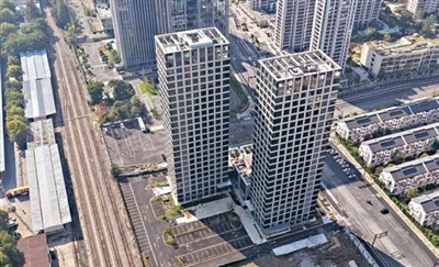 该项目东至铁路,南至规划沈康路,西至规划俞家桥路,北接杭政工出[2018]3号地块创新型产业用房,总建筑面积约2.92万平方米,其中地上建筑面积约2.38万平方米,地下建筑面积约5447平方米。建筑由两栋22层塔楼及一栋配套裙楼组成,整体设计现代简约,外立面采用铝板与玻璃幕墙相结合,通过金属线条勾勒与多层叠落的方盒子造型,在简洁中蕴含变化,体现出科技企业的典雅气质与未来感。