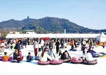 作为我区冰雪经济的“主战场”,大运河杭钢公园冰雪嘉年华已然成为新晋热门打卡点。这片近万方的场地精心规划了五大主题区域,自试运营以来,迅速成为亲子家庭和年轻人气聚集地。“我们特意从上海过来体验,没想到杭州市中心也有这么氛围感十足的雪景。”带孩子游玩的赵先生表示。公园的冰雪项目不仅包含戏雪玩雪等常规内容,还创新推出了雪地坦克、亲子雪橇车等特色玩法,让游客在工业景观中感受独特的冰雪乐趣。尤为引人注目的是以公园焦炉为背景打造的冰雪城堡,它创造出建筑结构与雪景的视觉反差。